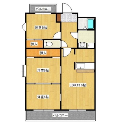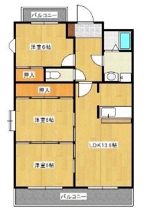 3LDK(69.99m²)└ LDK13.6帖 洋室6帖 洋室6帖 洋室6帖