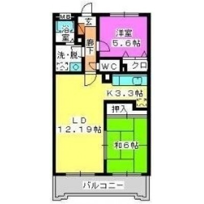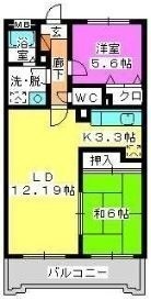 2LDK(60m²)└ LD12.19帖 K3.3帖 洋室5.6帖 和室6帖