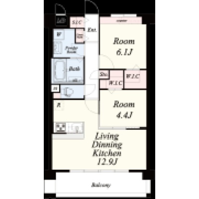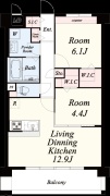 2LDK(56.23m²)└ LDK12.9帖 洋室4.4帖 洋室6.1帖