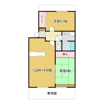 2LDK(61.7m²)└ LDK14.6帖 和室6帖 洋室6.7帖