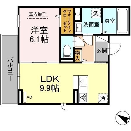 1LDK(41m²)└ LDK9.9帖 洋室6.1帖