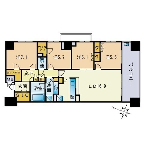 4LDK(91.3m²)└ LDK16.9帖 洋室7.1帖 洋室5.7帖 洋室5.5帖 洋室5.1帖