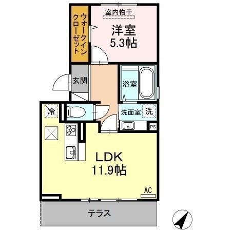1LDK(44.21m²)└ LDK11.9帖 洋室5.3帖