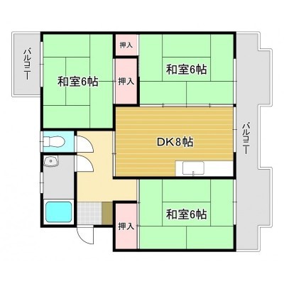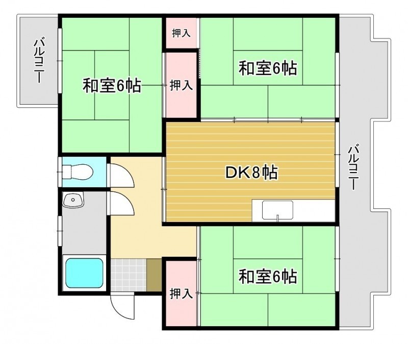 3DK(56.7m²)└ DK8帖 和室6帖 和室6帖 和室6帖