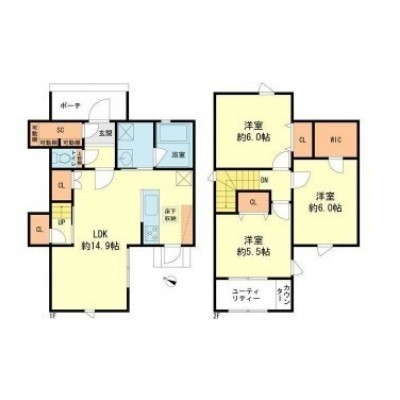 3LDK(84.87m²)└ LDK14.9帖 洋室6帖 洋室6帖 洋室5.5帖