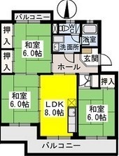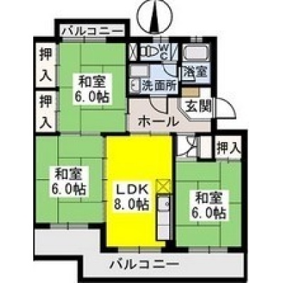 3DK(64.4m²)└ DK8帖 和室6帖 和室6帖 和室6帖