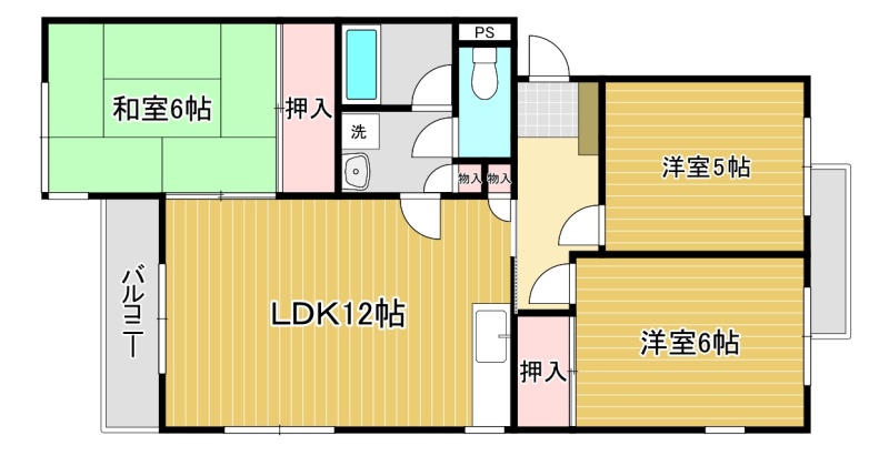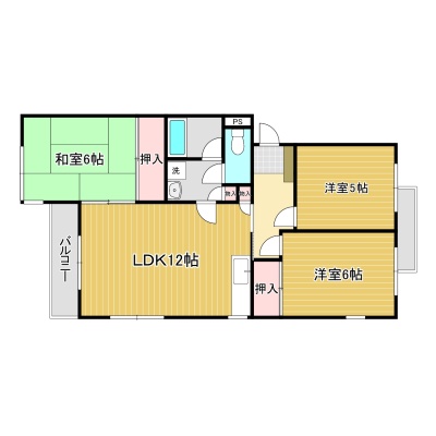 3LDK(61.15m²)└ LDK12帖 和室6帖 洋室6帖 洋室5帖