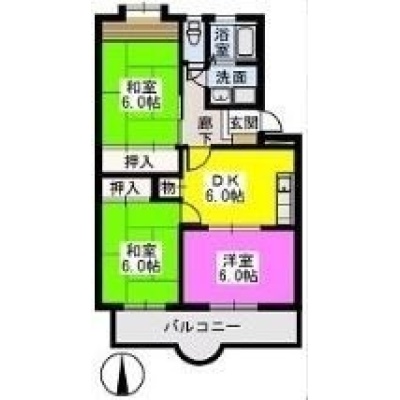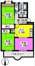 3DK(61.4m²)└ DK6帖 和室6帖 和室6帖 洋室6帖