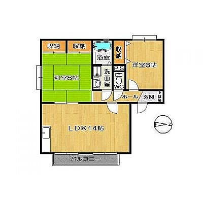 2LDK(54m²)└ LDK14帖 洋室6帖 和室8帖