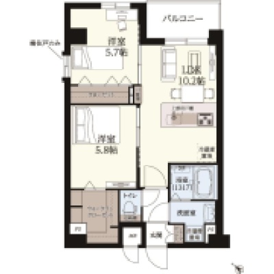 2LDK(53.4m²)└ LDK10.2帖 洋室5.7帖 洋室5.8帖