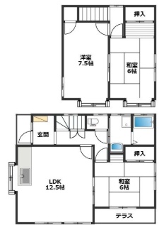 3LDK(77.01m²)└ LDK12.5帖 和室6帖 洋室7.5帖 和室6帖
