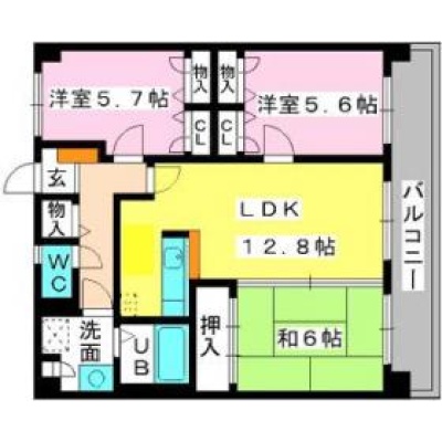 3LDK(70.14m²)└ LDK12.8帖 洋室5.7帖 洋室5.6帖 和室6帖