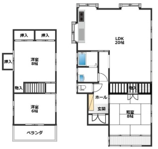 3LDK(95.26m²)└ LDK20帖 和室8帖 洋室8帖 洋室6帖