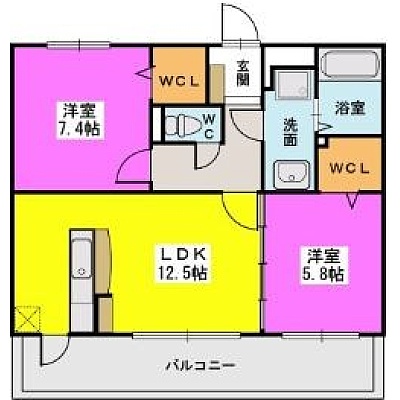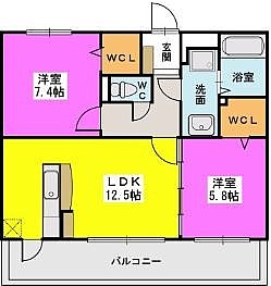 2LDK(59.68m²)└ LDK12.5帖 洋室7.4帖 洋室5.8帖