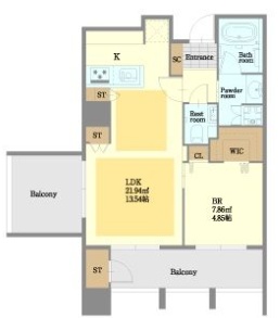 1LDK(43.97m²)└ LDK13.54帖 洋室4.85帖