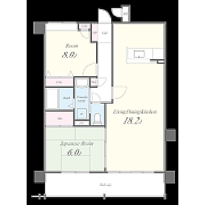 2LDK(65.08m²)└ LDK18.2帖 洋室8帖 和室6帖
