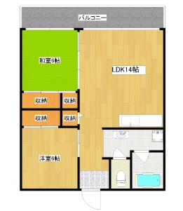 2LDK(58m²)└ LDK14帖 洋室6帖 和室6帖