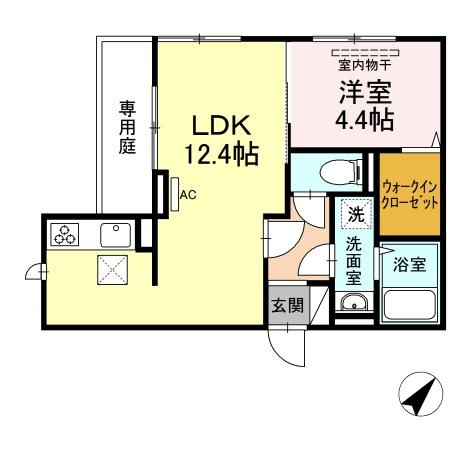 1LDK(40.9m²)└ LDK12.4帖 洋室4.4帖