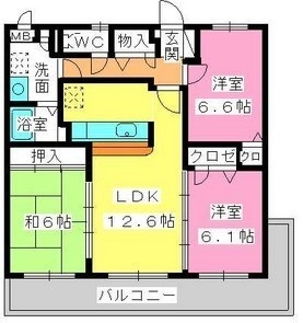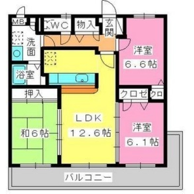 3LDK(69.28m²)└ LDK12.6帖 和室6帖 洋室6.6帖 洋室6.1帖