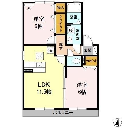 2LDK(53.48m²)└ LDK11.5帖 洋室6帖 洋室6帖