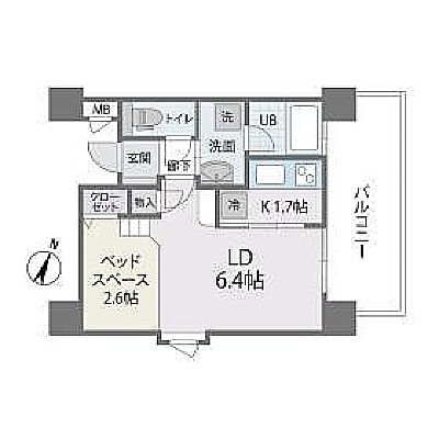 1K(27.02m²)└ K1.7帖 LD6.4帖 その他2.6帖