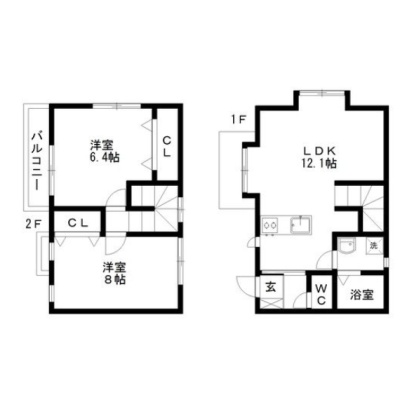 2LDK└ LDK12.1帖 洋室6.4帖 洋室8帖