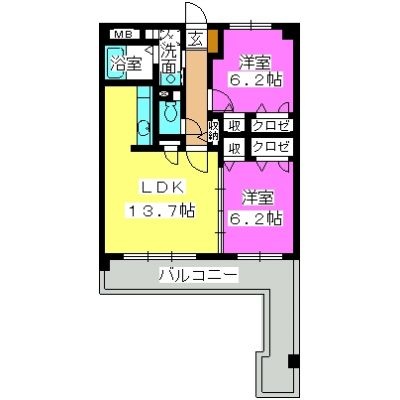 2LDK(60.07m²)└ LDK13.7帖 洋室6.2帖 洋室6.2帖