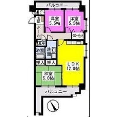 3LDK(70.35m²)└ LDK12.8帖 和室6帖 洋室5.5帖 洋室5.5帖