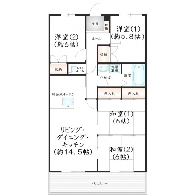 4LDK(82.8m²)└ LDK14.5帖 和室6帖 和室6帖 洋室5.8帖 洋室6帖