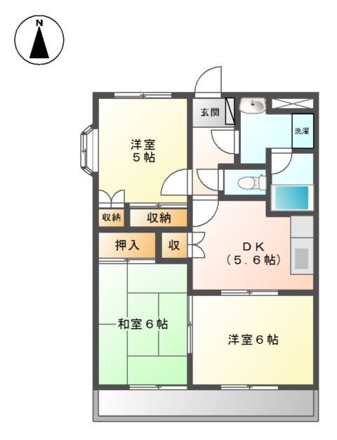 3DK(51.66m²)└ DK5.6帖 洋室6帖 その他5帖 和室6帖