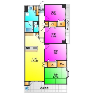 4LDK(85.41m²)└ LDK12.5帖 洋室5.3帖 洋室5.2帖 洋室6帖 和室6.4帖