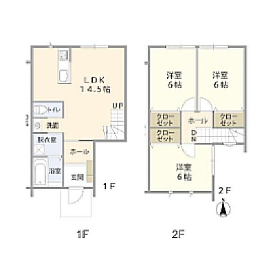 3LDK(91.71m²)└ LDK14.5帖 洋室6帖 洋室6帖 洋室6帖