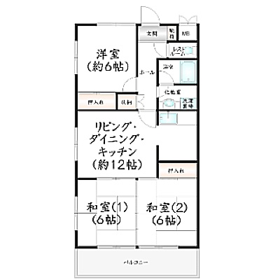 3LDK(64.4m²)└ LDK12帖 洋室6帖 和室6帖 和室6帖
