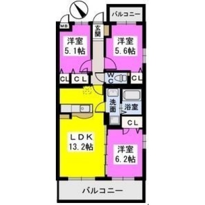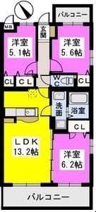 3LDK(67.89m²)└ LDK13.2帖 洋室5.1帖 洋室6.2帖 洋室5.6帖