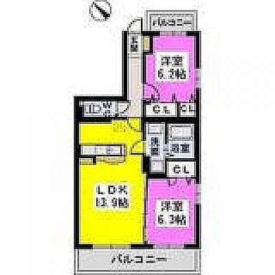 2LDK(61.96m²)└ LDK13.9帖 洋室6.2帖 洋室6.3帖