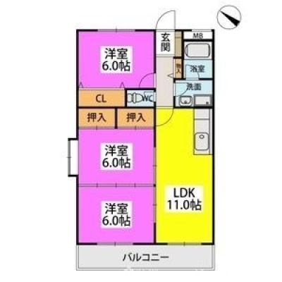 3LDK(69m²)└ LDK11帖 洋室6帖 洋室6帖 洋室6帖