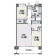 2LDK(58.28m²)└ LDK15.1帖 洋室5.7帖 洋室5.1帖