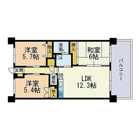 3LDK(65.52m²)└ LDK12.3帖 洋室5.7帖 洋室5.4帖 和室6帖