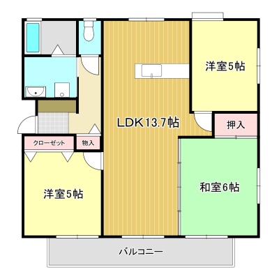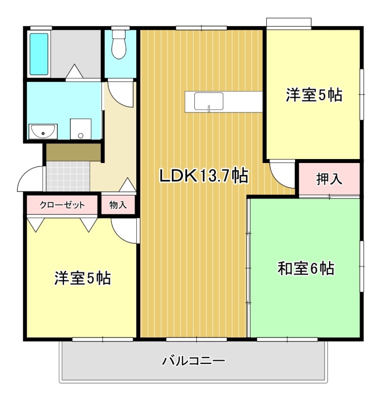 3LDK(67.07m²)└ LDK13.7帖 洋室5帖 洋室5帖 和室6帖
