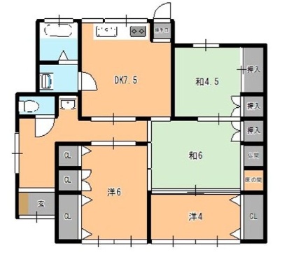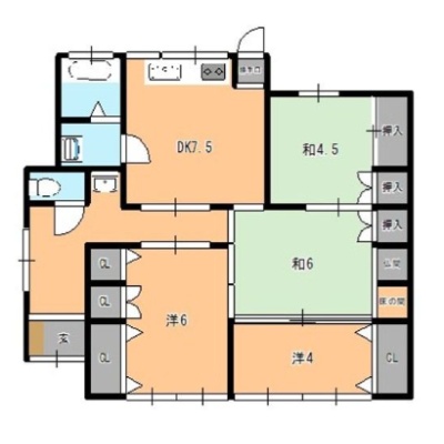 4DK└ DK7.5帖 洋室6帖 洋室4帖 洋室6帖 和室4.5帖