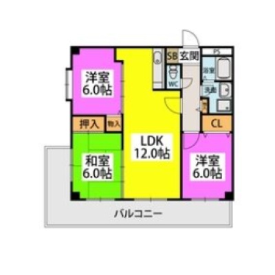 3LDK(70.06m²)└ LDK12帖 洋室6帖 洋室6帖 和室6帖