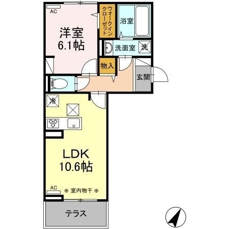 1LDK(42.93m²)└ LDK10.6帖 洋室6.1帖