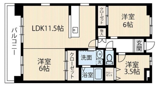 3LDK(68.14m²)└ LDK11.5帖 洋室6帖 洋室6帖 和室3.5帖