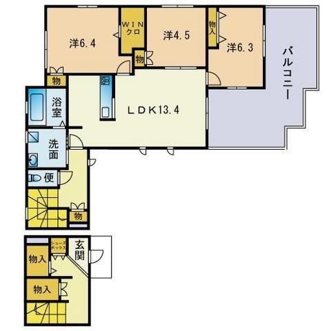 3LDK(85.46m²)└ LDK13.4帖 洋室6.4帖 洋室4.5帖 洋室6.3帖