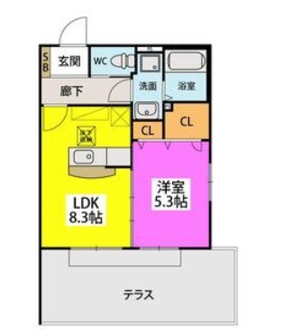 1LDK(35.43m²)└ LDK8.3帖 洋室5.3帖