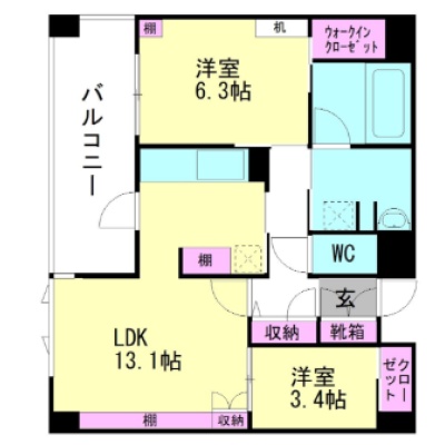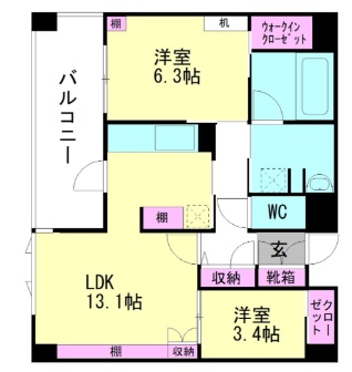 2LDK(56.21m²)└ LDK13.1帖 洋室3.4帖 洋室6.3帖