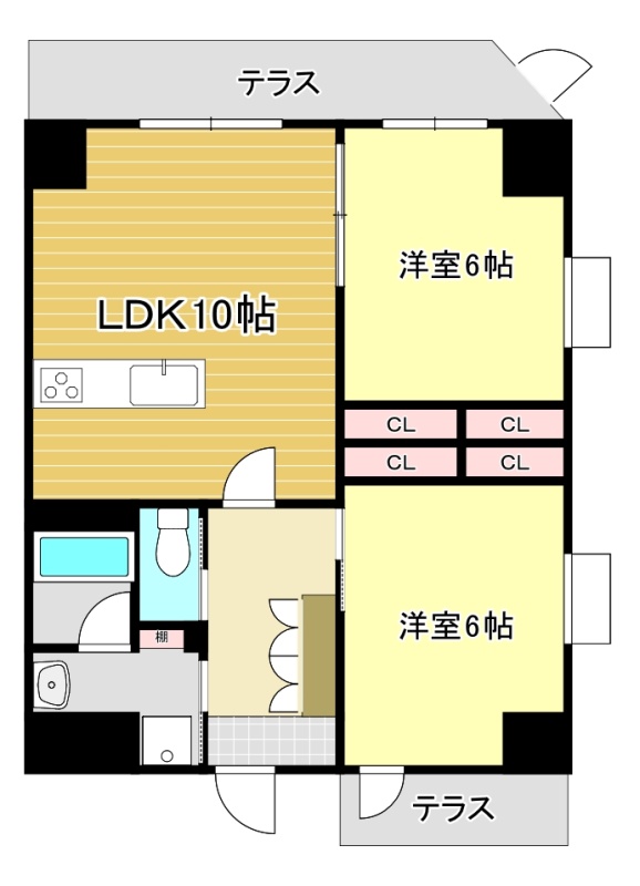 2LDK(58.08m²)└ LDK10帖 洋室6帖 洋室6帖