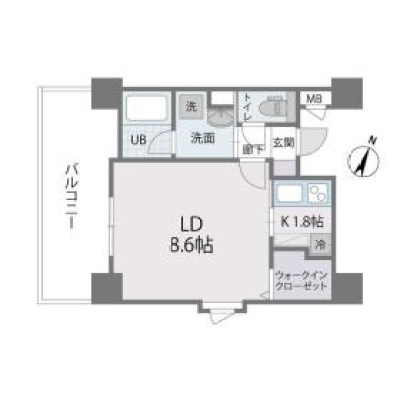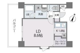 1K(28.23m²)└ 洋室8.6帖 K1.8帖