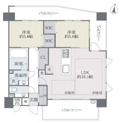 2LDK(71.58m²)└ LDK18帖 洋室5.6帖 洋室5.6帖