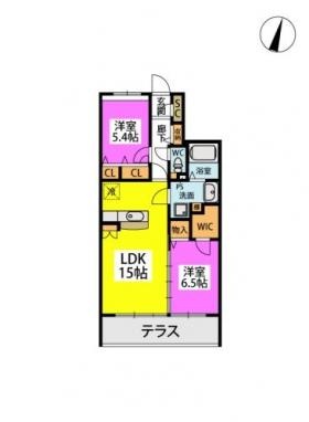 2LDK(66.47m²)└ LDK15帖 洋室6.5帖 洋室5.4帖
